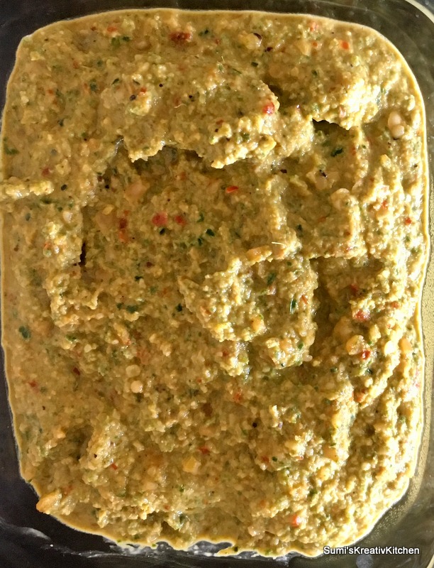 9. Serving: To a plate of hot rice/quinoa, add 2 tbsps of the thogayal, drizzle sesame oil on top, mix well and eat with cold raita!